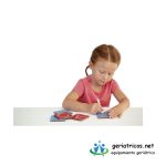 • Base de madera gruesa y estable para organizar actividades de exploración y reconocimiento táctil de letras.