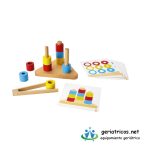 Tricolor es un juego de manipulación para practicar la motricidad fina y el apilamiento de forma independiente.